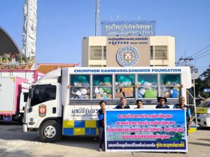 มูลนิธิชุมพรการกุศลสงเคราะห์ ร่วมกับเทศบาลเมืองชุมพร สมาคมข้าราชการครูบำนาญจังหวัดชุมพร ศูนย์ดูแลบุคลากรทางการศึกษาฯ ังหวัดชุมพร ชมรมคนรักในหลวงจังหวัดชุดพร บริจาคสิ่งของ 1 คันรถ