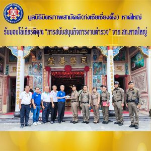 วันนี้ 15 ตุลาคม พ.ศ.2567 เวลา 13.00 น. มูลนิธิมิตรภาพสามัคคี(ท่งเซียเซี่ยงตึ๊ง) หาดใหญ่ ได้รับเกียรติจากพันตำรวจเอกภูมิ บาลทิพย์ ผู้กำกับการสถานีตำรวจภูธรหาดใหญ่ พร้อมคณะ ได้เดินทางมายังมูลนิธิฯ เพื่อมอบโล่เกียรติคุณ “การสนับสนุนกิจการงานตำรวจ จนเกิดเป็นผลดีแก่ทางราชการ” จากสถานีตำรวจภูธรหาดใหญ่ ให้กับทางมูลนิธิฯ พร้อมทั้งกล่าวขอบคุณที่ทางมูลนิธิฯ ได้ให้การสนับสนุนกิจการงานตำรวจด้วยดีเสมอมา โดยมีรองประธานมูลนิธิฯ พร้อมคณะกรรมการมูลนิธิฯ เป็นตัวแทนในการรับมอบโล่เกียรติคุณดังกล่าว