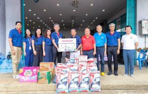 มอบ น้ำส้มตรามาลี ทรอปิคอล จำนวน 30 ลัง นมยูเอซที ตราฟาร์มโชคชัย รสจืด จำนวน 30 ลัง รวมมูลค่า 22,950 บาท