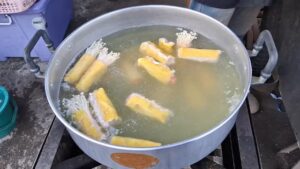 วันที่ 2 มิถุนายน 2568 ที่บริเวณปากซอย 2/1 บ้านเลขที่ 76 ถนนเตาอิฐ เขตเทศบาลนครสงขลา อำเภอเมือง จังหวัดสงขลา มีร้านกันเองเกี๊ยวหมูเด้งคำโต ชิ้นละ 12 บาท ของนางสาวปภัสวรา แซ่โค้ว อายุ 39 ปี มาเปิดร้านขายเกี๊ยว ที่ทำกันสดๆ ร้อนๆ ตรงนั้น ให้ลูกค้าเห็นกันจะๆ โดย ประกอบด้วย เกี๊ยวไส้เห็ด เกี๊ยวไส้กรอก เกี๊ยวปูอัด เกี๊ยวไส้กุ้ง และเกี๊ยวหมูล้วน รวม 5 ไส้ และมีน้ำจิ้มรสเด็ด ที่คิดสูตรขึ้นมาเองรับรองความอร่อย ของเกี๊ยวหมูเด้งคำโตอย่างแน่นอน โดยลูกค้า หลายคน ที่มาซื้อต่างไม่ผิดหวังในรสชาติความอร่อย ในวันนี้มีลูกค้าแวะเวียนมาอุดหนุนซื้อเกี๊ยวกลับไปกินที่บ้านอย่างต่อเนื่อง