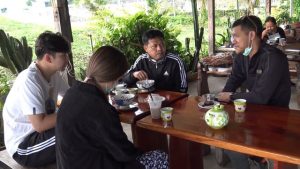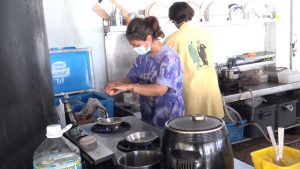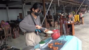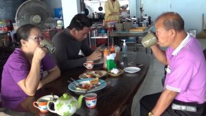 สำหรับบรรยากาศในวันนี้ ซึ่งเป็นวันหยุดสุดสัปดาห์เป็นไปด้วยความคึกคักลูกค้าเดินทางเข้ามารับประทานอาหารเช้าและดื่มน้ำชากาแฟสด ซึ่งส่วนใหญ่จะเป็นลูกค้า ที่มากินเป็นประจำ และลูกค้าขาจรที่ต้องการเข้ามานั่งกินในร้าน ก็แวะเวียนเข้ามา นั่งกินอย่างต่อเนื่อง  นางสาวธภัทร มณีแสง น้องสาวคนเล็กที่ทำหน้าที่แคชเชียร์ กล่าวว่า ทางร้านจะมีอาหารเช้ากาแฟสดและมีอาหารเยอะแยะมากมายเลยเพียบ พร้อมด้วยบรรยากาศชายทะเลอยากเชิญชวนลูกค้าให้มานั่งตรงนี้ โดยจะเปิดร้านตั้งแต่ 6 โมงเช่าถึงเที่ยงตรง