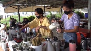 ร้านขายน้ำชากาแฟสดอาหารเช้าริมชายหาดชลาทัศน์ช่วงวันหยุดคึกคัก