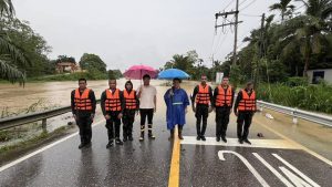 • เวลา 13.00 น. มอบหมายให้ นายณัฎฐ์ชวิศ ไชยวรรณ ปลัดอำเภอประจำตำบลคอหงส์ ลงพื้นที่ร่วมกับ นายกเทศมนตรีเมืองคอหงส์ ปลัดเทศบาลคณะผู้บริหาร สมาชิกสภา ประธานชุมชนปลักธง เจ้าหน้าที่ศูนย์กู้ชีพกู้ภัยมัชฌิมา จากมูลนิธิโรงเจเต๋าบ้อเก๊ง หาดใหญ่ มูลนิธิท่งเซียเซี่ยงตึ้งหาดใหญ่ ทหารจากมณฑลทหารบกที่ 42 ค่ายเสนาณรงค์ ร่วมช่วยเหลือประชาชนชุมชนปลักธง ที่น้ำท่วมคลองสูงล้นตลิ่ง ท่วมถนนสูงสัญจรไม่ได้ ต้องอพยพประชาชน สัตว์เลี้ยงออกจากหมู่บ้านวราสิริ แกรนดิโอ ปลักธง ซึ่งน้ำท่วมสูงสถานการณ์ธงแดงในวันที่ 27 พ.ย. 67 และได้ประสานกับประธานชุมชนปลักธง ถึงผู้ป่วยติดเตียง จำนวน 1 ราย ที่ช่วยอพยพออกมา ซึ่งต้องเร่งอพยพประชาชนออกมา เนื่องจากช่วงเย็นวันนี้การไฟฟ้าส่วนภูมิภาคจะมาตัดกระแสไฟ เพื่อความปลอดภัยของประชาชน