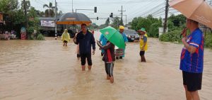 • เวลา 13.00 น. มอบหมายให้ นายณัฎฐ์ชวิศ ไชยวรรณ ปลัดอำเภอประจำตำบลคอหงส์ ลงพื้นที่ร่วมกับ นายกเทศมนตรีเมืองคอหงส์ ปลัดเทศบาลคณะผู้บริหาร สมาชิกสภา ประธานชุมชนปลักธง เจ้าหน้าที่ศูนย์กู้ชีพกู้ภัยมัชฌิมา จากมูลนิธิโรงเจเต๋าบ้อเก๊ง หาดใหญ่ มูลนิธิท่งเซียเซี่ยงตึ้งหาดใหญ่ ทหารจากมณฑลทหารบกที่ 42 ค่ายเสนาณรงค์ ร่วมช่วยเหลือประชาชนชุมชนปลักธง ที่น้ำท่วมคลองสูงล้นตลิ่ง ท่วมถนนสูงสัญจรไม่ได้ ต้องอพยพประชาชน สัตว์เลี้ยงออกจากหมู่บ้านวราสิริ แกรนดิโอ ปลักธง ซึ่งน้ำท่วมสูงสถานการณ์ธงแดงในวันที่ 27 พ.ย. 67 และได้ประสานกับประธานชุมชนปลักธง ถึงผู้ป่วยติดเตียง จำนวน 1 ราย ที่ช่วยอพยพออกมา ซึ่งต้องเร่งอพยพประชาชนออกมา เนื่องจากช่วงเย็นวันนี้การไฟฟ้าส่วนภูมิภาคจะมาตัดกระแสไฟ เพื่อความปลอดภัยของประชาชน