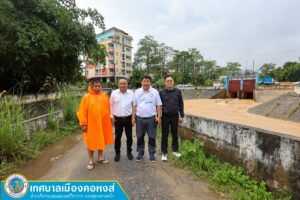 นายกหนอน และ นายกแป้น ลงพื้นที่ร่วมหารือการบริหารจัดการน้ำ ณ บริเวณแก้มลิงคลองเรียน และประตูระบายน้ำคลอง ร.6 วันที่ 18 ธันวาคม 2568 เวลา 15.30 น. นายทวีศักดิ์ ทวีรัตน์ นายกเทศมนตรีเมืองคอหงส์ ร่วมหารือ กับ นายณรงค์พร ณ พัทลุง นายกเทศมนตรีนครหาดใหญ่ พร้อมด้วยนายธนดล เจริญมาก สมาชิกสภาเทศบาลเมืองคอหงส์ ได้ร่วมพูดคุย วางแผน แก้ไขปัญหาน้ำ และเร่งเปิดประตูระบายน้ำแก้มลิงคลองเรียน เพื่อระบายในพื้นที่เทศบาลเมืองคอหงส์และเทศบาลนครหาดใหญ่