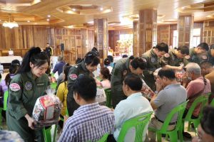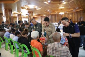ต่อจากนั้น มอบถุงยังชีพและน้ำดื่มให้แก่ประชาชนในพื้นที่จำนวน 100 ชุด โดยมีการจัดเตรียมสิ่งของอย่างดีเพื่อให้ความช่วยเหลืออย่างครบถ้วนและเพียงพอ