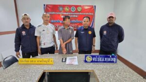 วันที่ 30 ตุลาคม 2568 เวลา 12.30 น. ภายใต้การอำนวยการของนายเอก ยังอภัย ณ สงขลา นายอำเภอหาดใหญ่ และนางสาวปิยพัชร์ วุ่นดำ ปลัดอำเภอหัวหน้ากลุ่มงานบริหารงานปกครอง ได้สั่งการให้นายธีรเดช จันมณี ปลัดอำเภอหัวหน้าฝ่ายความมั่นคง นายณัฏฐ์ชวิศ ไชยวรรณ ปลัดอำเภองานป้องกัน นายจรูญวิทย์ ภักภิรมย์ ปลัดอำเภอฝ่ายความมั่นคง นายณรงค์กร สุวรรณะ จ่ากองร้อย นายหมู่ใหญ่สัญญา คงสกุล พร้อมด้วยสมาชิกกองอาสารักษาดินแดนอำเภอหาดใหญ่ที่ 4 ลงพื้นที่ซุ้มสังเกตุการณ์ชายมีพฤติกรรมลักลอบจำหน่ายยาเสพติดให้กับวัยรุ่นในพื้นที่ ณ บริเวณหน้าร้านสะดวกซื้อ 7-Eleven สาขาถนนราษฎร์ยินดี ซอย 9 ตำบลหาดใหญ่ อำเภอหาดใหญ่ จังหวัดสงขลา จากการตรวจค้นพบยาเสพติดให้โทษประเภท 1 (ไอซ์) มีลักษณะเป็นเกล็ดสีขาวใส บรรจุในซองพลาสติกใส แบบซิปล็อค จำนวน 2 ถุง น้ำหนักรวมถุง ถุงละ 0.9 อยู่ในกำมือข้างซ้าย โดยมีกระดาษทิชชูห่ออีกชั้นหนึ่ง ชุดจับกุมจึงได้ควบคุมตัวผู้ต้องหาพร้อมตรวจยึดของกลาง และแจ้งข้อกล่าวหาและบันทึกรายละเอียดการจับกุม ณ ที่ว่าการอำเภอหาดใหญ่ เพื่อนำส่งพนักงานสอบสวน สภ.คอหงส์ เพื่อดำเนินคดีตามกฎหมายต่อไป โดยได้แจ้งข้อกล่าวหาว่า มียาเสพติดให้โทษประเภท 1 (ไอซ์) มีไว้ในครอบครองโดยผิดกฎหมาย