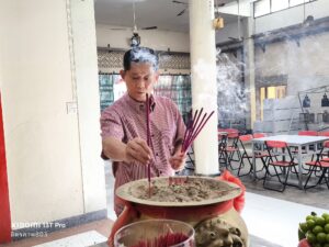 วันอาทิตย์ที่ 21 กันยายน พ.ศ.2568 เป็นวันคล้ายวันประสูติพระโพธิสัตว์ตี่จั่งอ้วงผ่อสัก และวันปิดงานทิ้งกระจาด ปี68 ของมูลนิธิฯ ทางมูลนิธิมิตรภาพสามัคคี(ท่งเซียเซี่ยงตึ๊ง) หาดใหญ่ ได้จัดให้มีพิธีป่วงเซียง สาธยายพระสูตร ถวายเครื่องสักการะบูชาองค์ #พระโพธิสัตว์ตี่จั่งอ้วงผ่อสัก (ณ.แท่นบูชา ด้านหลังวิหารหลงวงปู่ไต้ฮงกง) หลังจากนั้นมีพิธีสาธยายมนต์มหายาน ถวายเครื่องเซ่นไหว้ เสื้อผ้า กระดาษ ภูเขาเงินภูเขาทอง ให้แก่สัมภเวสี ดวงวิญญาณไร้ญาติทั่วไป บริเวณลานหน้าวิหารหลวงปู่ไต้ฮงโจวซือ โดยคณะดนตรีจีน คณะศาสนพิธี ของมูลนิธิฯ ซึ่งในพิธีดังกล่าว มีรองประธานมูลนิธิฯ ,คณะกรรมการมูลนิธิฯ เข้าร่วม หลังจากนั้นจึงได้ทำการเผาเสื้อผ้า กระดาษ ภูเขาเงิน ภูเขาทอง เป็นอันเสร็จพิธี