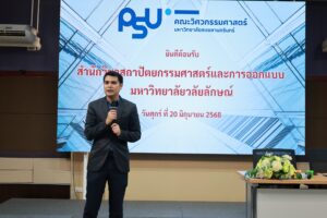 วันที่ 20 มิถุนายน 2568 สำนักวิชาสถาปัตยกรรมศาสตร์และการออกแบบ มหาวิทยาลัยวลัยลักษณ์ จำนวน 40 ท่าน ได้เข้าศึกษาดูงานและรับฟังการบรรยายพิเศษเกี่ยวกับการออกแบบ “ตึกสตางค์ มงคลสุข” ซึ่งเป็นอาคารที่ได้รับมาตรฐานและความโดดเด่นด้านงานออกแบบทางสถาปัตยกรรมและระบบวิศวกรรม