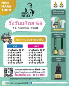 สามารถสมัครได้ผ่านระบบ Thai run https://race.thai.run/mahidoldayrun68
