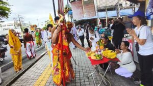 ผู้สื่อข่าวข่ายงานว่า ศาลพระแม่กวนอิมสวนหมาก จัดขบวนแห่พระและองค์เทพศักดิ์สิทธิ์จากศาลเจ้าต่างๆ แห่ให้ประชาชนในเขตเทศบาลนครสงขลาได้ทำการสักการะบูชา เนื่องในงานเทศกาลถือศีลกินเจเมืองสงขลาของศาลพระแม่กวนอิมสวนหมากร่วมกับเทศบาลนครสงขลา จัดขึ้น เพื่อให้พี่น้องชาวจังหวัดสงขลาได้ร่วมกันสักการะบูชาพระและองค์เทพศักดิ์สิทธิ์ตลอดช่วงเทศกาลถือศีลกินเจ