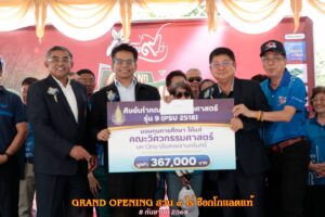 พิธีมอบทุนการศึกษาจัดขึ้นในงาน Grand Opening คาเฟ่สวน ๙ ไร่ “เส้นทางโกโก้ไทยสู่อนาคต” ณ ตำบลทุ่งใหญ่ อำเภอหาดใหญ่ จังหวัดสงขลา ซึ่งเป็นผลงานของ วิสาหกิจชุมชน 9 ไร่ เกษตรอินทรีย์ ภายใต้การนำของ นายแสง ชัยจีระธิกุล ศิษย์เก่าคณะวิศว ม.อ. รุ่น 9 ประธานการจัดงาน ที่มุ่งพัฒนาการผลิตโกโก้ครบวงจร ตั้งแต่การรับผลผลิตจากเกษตรกร การแปรรูป จนถึงการสร้างสรรค์ผลิตภัณฑ์ช็อกโกแลตเพื่อสุขภาพ