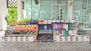 ผลการตรวจค้นพบ บุหรี่ต่างประเทศ จำนวน 20,000 คอตตอน (400,000 มวน) มูลค่าประมาณ 2 ล้านบาท และ บุหรี่ไฟฟ้าพร้อมอุปกรณ์ประกอบ จำนวน 8,450 ชิ้น มูลค่าประมาณ 3,731,500 บาท รวมมูลค่าของกลางทั้งสิ้นกว่า 5.7 ล้านบาท