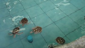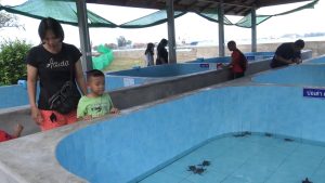 สำหรับศูนย์อนุรักษ์พันธุ์เต่าทะเลกองทัพเรือ มีบ่อเลี้ยงเต่าทะเลบ่อใหญ่ 1 บ่อ ที่เลี้ยงเต่าอายุ 1 ปี 8 เดือนจำนวน 8 ตัวและบ่อขนาดเล็ก 12 บ่อ มีเต่าขนาดตั้งแต่อายุ 1 เดือนไปจนถึง 7 เดือน ในแต่ละบ่อ จะมีเต่าไม่เท่ากัน ถ้าเต่าเล็กก็จะอยู่ที่ 30 ตัวต่อบ่อขนาด4-5 เดือนก็อยู่ประมาณ 20 ตัวต่อบ่อ ขณะนี้ ที่ศูนย์เรียนรู้แห่งนี้มีเต่าทั้งหมด 150 ตัว
