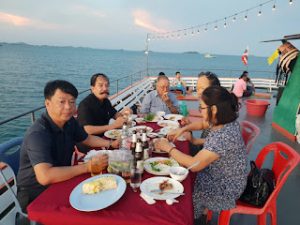 ซึ่งการล่องเรือไปเกาะเสม็ดในครั้งนี้ สร้างความประทับใจให้กับสื่อมวลชนจากประเทศเวียดนามเป็นอย่างมาก โดยมีงานเลี้ยงสังสรรค์และการรับประทานอาหารร่วมกันบนเรือ ที่พาวนรอบเกาะเพื่อชมทัศนียภาพของเกาะเสม็ดในยามค่ำคืน โดยมี ดร.ก้องเกียรติ เต็มตำนาน ผู้อำนวยการสำนักบริหารพื้นที่อนุรักษ์ที่ 2 (ศรีราชา) นายสาธิต ปิ่นกุล ผู้อำนวยการส่วนอุทยานแห่งชาติ นายอนิรุทธ์ ถนอมวัฒนา ผู้อำนวยการส่วนอำนวยการ และ นายนิทัศน์ นุ่นสง หัวหน้าอุทยานแห่งชาติเขาแหลมหญ้า-หมู่เกาะเสม็ด ร่วมลงเรือและรับประทานอาหาร พร้อมตอบข้อซักถามแก่สื่อมวลชนด้วย