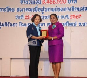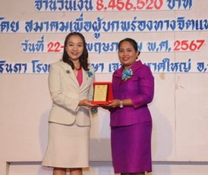 รวมทั้งเสริมพลังองค์กรเครือข่ายให้เข้มแข็ง และประชุมใหญ่ สามัญ ประจําปี 2566 โดยมี มีกลุ่มเป้าหมายประกอบด้วย คณะกรรมการบริหารสมาคมฯ ที่ปรึกษาสมาคมฯ กรรมการเครือข่ายภาค/เขต คนพิการทางจิตและผู้ดูแล แกนนําชมรมเครือข่าย วิทยากรและเจ้าหน้าที่ รวมจํานวน 1,940 คน คุณนุชจารี คล้ายสุวรรณ” นายกสมาคมเพื่อผู้บกพร่องทางจิตแห่งประเทศ(กล่าวว่า)โดยมีมติที่ประชุมคณะกรรมการบริหารสมาคมฯ ครั้งที่ 7 เมื่อวันที่ 24 เมษายน 256 เสนอให้มอบ รางวัลให้กับ หน่วยงาน องค์กร และบุคคล ที่ช่วยเหลือและสนับสนุนงานด้านคนพิการ ซึ่งทางสมาคมฯ ได้พิจารณาชื่อบุคคล/หน่วยงาน/องค์กรรับรางวัล