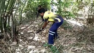 วันที่ 25 ตุลาคม 2567 ผู้สื่อข่าวรายงาน ว่า นายทวีศักดิ์ บุญเศษ ,นาย อภิชาติ พรหมสงค์ ทีมอสรพิศวิทยาภาคใต้ เขต สงขลา และ กู้ชีพ อบต.ท่าประดู่ กำลังออกปฎิบัติหน้าที่อยู่ในพื้นที่ของอำเภอนาทวี จ.สงขลา ได้รับแจ้งจากน.ส.อรนุช อายุ 47 ปี อยู่บ้านในต.ฉาง อ.นาทวี จ.สงขลา ว่า มาช่วยจับงูจงอางขนาดใหญ่ อยู่ในกอไผ่ ใกล้กับบ้านพัก คนในบ้านหวาดกลัวมาก ไม่กล้าเดินผ่าน และจะไปไหนที่ต้องผ่านงูจงอางต่างพากันหวากกลัวจะได้รับอันตรายจากงูจงอาง หลังจากที่เจ้าหน้าที่ได้รับแจ้งจึงรีบนำอุปกรณ์ในการจับงูเข้าทำการตรวจสอบทันที