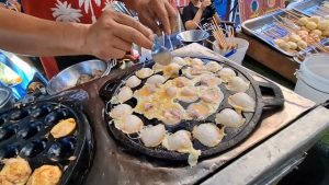 นางจันจิรา หรืออ้อย เลขะสม กล่าวว่า เมื่อก่อน เราก็ขายของ เป็นขนมจีน และไก่ย่าง ที่มาทำหอยครก ก็เพราะว่า มันไม่เหมือนใคร แล้วแตกต่างจากคนอื่นเขา ในส่วนของแนวคิด ตัวเอง ชอบกินหอยทอด ที่น้ำมันน้อยๆ ก็เลยคิดทำหอยครกที่น้ำมันน้อยๆ ก็เลยต้องทำแบบนี้ สำหรับสูตร ในการทำ หอยครกอันนี้เราคิดเอง ที่ทำอยู่ก็มี หอย หมึก และกุ้ง และก็มีรวม ลูกค้าตอบรับดีมาก โดยเราขาย 7 ชิ้น 30 บาท 10 ชิ้น 40 บาท ราคาเหมือนกันทุกอย่าง ไม่ว่าหอยหมึกกุ้ง หรือว่ารวม ราคาเดียวกัน