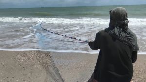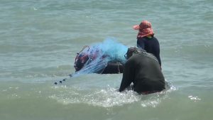 ผู้สื่อข่าวรายงาน ว่า ที่บริเวณชายหาดชลาทัศน์ แหลมสมิหลาสงขลา นายพรเทพ สุระคำแหง และนายธนบูรณ์ แสงนพรัตน์ สองหนุ่มชาวสงขลา ใช้เวลาว่างจากการทำงานประจำ มาสร้างรายได้ในวันหยุดสุดสัปดาห์ นำอวนทับตลิ่งมาลากจับปลากระบอกบริเวณชายหาดชลาทัศน์ แหลมสมิหลา ส่งขายให้กับร้านอาหารริมชายหาดที่สั่งจองเข้ามาล่วงหน้า เนื่องจากเป็นปลาที่สดจากทะเลและยังเป็นๆอยู่