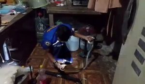เมื่อทีมอรสพิษฯไปถึงก็รีบค้นหางูทันทีจนพบว่าเป็นงูเห่าไทย กำลังขดตัวอยู่ข้างตะกร้าผ้า จึงเข้าทำการจับงูเห่าไทย โดยใช้เวลานานประมาณ 3 นาทีเศษ ก็สามารถจับงูเห่าไทยไว้ได้ นำมาวัดได้ความยาวประมาณ 1.20 เมตร จึงจับใส่กระสอบเพื่อเตรียมไปปล่อยคืนสู่ป่าธรรมชาติที่อยู่ห่างไกลบ้านเรือนผู้คนต่อไป