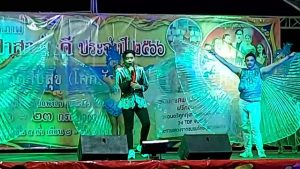 เมื่อคืนที่ผ่านมา ( 22 ก.ค.66 ) ที่ วัดสืบสุข หรือ วัดโคกศักดิ์ ตำบลพังลา อ.สะเดา จ.สงขลา ได้จัดให้มีการแสดงบนเวที โดยมีการแสดงศิลปะรำแบบไทยพื้นบ้านประชันกับศิลปะรำแบบมอญ ขึ้นสร้างสีสันให้กับผู้ที่เดินทางมาเที่ยวภายในงานทอดผ้าป่าสามัคคีวัดสืบสุข ก่อนที่จะมีการทอดผ้าป่าในวันนี้ ( 23 ก.ค.66 ) ซึ่งสร้างความประทับใจให้กับผู้ชม หลังจากชมศิลปะการรำแบบไทยและมอญแล้ว นักร้องเพลงลูกทุ่งดาวรุ่งกำลังมาแรง น้องเรน ธีรเทพ ได้ขึ้นเวทีร้องเพลง คอยนางที่ท่าศาลา ก็ได้รับความสนใจจากผู้ที่เข้าชม พากันมอบรางวัลให้จำนวนมาก สร้างสีสันเพิ่มภายในงานทอดผ้าป่าอีกด้วย