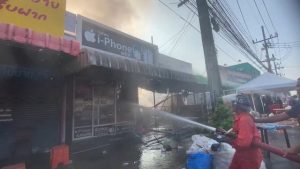 ด้านชายเจ้าของร้านโทรศัพท์มือถือบอกว่าตอนเกิดเหตุนอนอยู่หลังร้านได้ยินเสียงดังป๊อกแป๊กจึงลุกขึ้นมาดูก็พบว่าถูกไฟไหม้