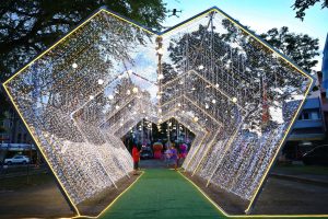 นี่คือส่วนหนึ่งในการตกแต่งสถานที่จัดงาน “Hatyai Countdown 2024” บริเวณถนนศุภสารรังสรรค์ หน้าสวนหย่อมศุภสารรังสรรค์ (ท่งเซียเซี่ยงตึ้ง) มีเวทีคอนเสริต์, 3D Animation LED Mapping, ประดับดอกไม้ไฟ, Giant Landmark และตุ๊กตาเป่าลมยักษ์ ยังไม่เต็มระบบเพียงกำลังทดสอบระบบไฟและจัดระบบแสงสีเท่านั้น