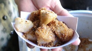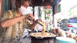 ขนมการอจี้สูตรโบราณแท้”คุณทิพวรรณ เจ้าของร้านการอจี้ เล่าว่าตนได้สืบทอดกิจการต่อจากรุ่นคุณพ่อคุณแม่ ซึ่งเป็นชาวจีนโพ้นทะเล ในอดีต คุณทิพวรรณได้ขายเต้าฮวยสูตรโบราณที่ได้รับจากคุณแม่ ก่อนที่ในปัจจุบัน คุณทิพวรรณ ได้ขายขนมการอจี้แทน คุณทิพวรรณกล่าวว่า ขนมการอจี้เป็นขนมโบราณของชาวจีน และคุณทิพวรรณได้รับสูตรการทำขนมการอจี้ จากคุณแม่เช่นกัน ขนมการอจี้ของคุณทิพวรรณจึงมีความอร่อยแบบฉบับจีนแท้ เนื้อแป้ง กรอบนอกนุ่มใน เมื่อรับประทานพร้อมน้ำตาล และงาที่โรยหน้าสามารถเพิ่มรสชาติความอร่อยได้มากทีเดียว