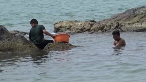หอยแมลงภู่ริมชายหาดสมิหลา ปีนี้มีน้อยและขนาดเล็ก ไม่สามารถเก็บไปเป็นอาหารได้