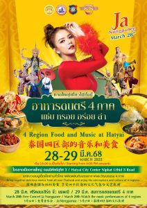 หาดใหญ่เที่ยวได้ทั้งปี อาหารดนตรี 4 ภาค แซ่บ หรอย อร่อย ลำ ยกขบวนเมนูเด็ดเจ็ดย่านทั่วไทย เพลิดเพลินกับบรรยากาศและวัฒนธรรม 4 ภาค วันที่ 28-29 มีนาคม 2568 เวลา 16.00 น. เป็นต้นไป พิเศษสุดๆ พบกับ คอนเสิร์ต จ๊ะ นงผณี วันที่ 28 มี.ค.68 และชมการแสดงดนตรี 4 ภาค วันที่ 29 มี.ค.68 แล้วมาแซ่บ หรอย อร่อย ลำ กันได้ใจกลางเมืองหาดใหญ่ บริเวณถนนนิพัทธ์อุทิศ 3