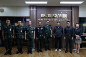 (5 ก.พ.69) นายกแป้น พร้อมด้วย ปลัดเทศบาล หัวหน้าส่วนราชการ และเจ้าหน้าที่ ร่วมต้อนรับ พันโท สุพิชัย ประกอบกาญจน์ รองหัวหน้ากองข่าวมณฑลทหารบกที่ 42 พร้อมด้วยคณะฝ่ายข่าวฯค่ายเสนาณรงค์ ณ สำนักงานเทศบาลนครหาดใหญ่ ร่วมแลกเปลี่ยนข้อมูลข่าวสาร พร้อมหารือแนวทางในการบังคับใช้กฎหมาย และขยายจับกุมผู้ค้า หรือผู้เสพ ที่ลักลอบนำยาเสพติดเข้ามาภายในค่ายเสนาณรงค์ เพื่อป้องกันและปราบปรามยาเสพติดฯ