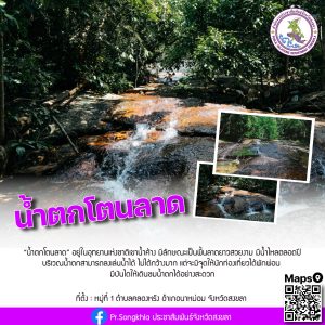 น้ำตกโตนลาด อยู่ในอุทยานเห่งชาติเขาน้ำค้าง มีลักษณะเป็นพื้นลาดยาวสวยงาม มีน้ำไหลตลอดปีบริเวณน้ำตกสามารถลงเล่นน้ำได้ ไม่ได้กว้างมาก แต่จะมีจุดให้นักท่องเที่ยวได้พักผ่อน มีบันไดให้เดินชมน้ำตกได้อย่างสะดวก