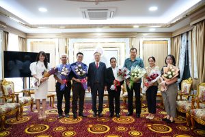 เมื่อวันที่ 25 มิถุนายน 2568 ในวาระก่อนการประชุมบริหาร มหาวิทยาลัยวลัยลักษณ์ ครั้งที่ 5/2568 ณ ห้องประชุมโมคลาน ชั้น 3 อาคารศาสตราจารย์ ดร.วิจิตร ศรีสอ้าน มหาวิทยาลัยวลัยลักษณ์ ศาสตราจารย์ ดร.สมบัติธำรงธัญวงศ์ อธิการบดีมหาวิทยาลัยวลัยลักษณ์ มอบช่อดอกไม้แก่นักศึกษาและบุคลากรที่สร้างชื่อเสียงให้มหาวิทยาลัย โดยมีรายละเอียดดังนี้