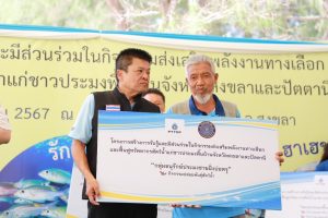 วันนี้ (25 พฤษภาคม 2567) ที่บริเวณหาดระวะ ตำบลระวะ อำเภอระโนด จังหวัดสงขลา นายบัญชา สุขแก้ว อธิบดีกรมประมง เดินทางมาเป็นประธานเปิด “โครงการสร้างการรับรู้และมีส่วนร่วมในกิจกรรมส่งเสริมพลังงานทางเลือกและฟื้นฟูทรัพยากรสัตว์น้ำให้แก่ชาวประมงพื้นบ้านจังหวัดสงขลาและจังหวัดปัตตานี” ภายใต้ความร่วมมือระหว่างกรมประมง และ บริษัท ปตท.สำรวจและผลิตปิโตรเลียม จำกัด (มหาชน) ในการดำเนินกิจกรรมที่เป็นประโยชน์เพื่อสังคมและสิ่งแวดล้อม ภายใต้บันทึกข้อตกลงความร่วมมือ โครงการศึกษาวิจัยการจัดสร้างแหล่งอาศัยสัตว์ทะเลเพื่อการประมงจากขาแท่นหลุมผลิตปิโตรเลียมนอกชายฝั่งทะเลอาวไทย โดยมี นายจรูญศักดิ์ เพชรศรี ผู้ตรวจราชการกรมประมง นายวรพันธุ์ สุวรรณยุหะ นายอำเภอระโนด นายพีระศักดิ์ พานิชไตรภพ ผู้จัดการอาวุโส ฝ่ายการรื้อถอน บริษัท ปตท.สำรวจและผลิตปิโตรเลียม จำกัด (มหาชน) นายอำนวย คงพรหม ผู้อำนวยการกองวิจัยและพัฒนาประมงทะเล นายเจริญ โอมณี ประมงจังหวัดสงขลา พร้อมด้วยผู้แทนสมาชิกสภาผู้แทนราษฎร เขต 4 สงขลา ผู้บริหารองค์กรปกครองส่วนท้องถิ่น ผู้นำพื้นที่ เจ้าหน้าที่กรมประมง และพี่น้องชาวประมงบริเวณชายฝั่งทะเลจังหวัดสงขลาและปัตตานี เข้าร่วม