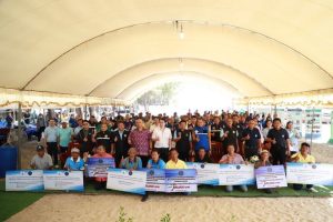 วันนี้ (25 พฤษภาคม 2567) ที่บริเวณหาดระวะ ตำบลระวะ อำเภอระโนด จังหวัดสงขลา นายบัญชา สุขแก้ว อธิบดีกรมประมง เดินทางมาเป็นประธานเปิด “โครงการสร้างการรับรู้และมีส่วนร่วมในกิจกรรมส่งเสริมพลังงานทางเลือกและฟื้นฟูทรัพยากรสัตว์น้ำให้แก่ชาวประมงพื้นบ้านจังหวัดสงขลาและจังหวัดปัตตานี” ภายใต้ความร่วมมือระหว่างกรมประมง และ บริษัท ปตท.สำรวจและผลิตปิโตรเลียม จำกัด (มหาชน) ในการดำเนินกิจกรรมที่เป็นประโยชน์เพื่อสังคมและสิ่งแวดล้อม ภายใต้บันทึกข้อตกลงความร่วมมือ โครงการศึกษาวิจัยการจัดสร้างแหล่งอาศัยสัตว์ทะเลเพื่อการประมงจากขาแท่นหลุมผลิตปิโตรเลียมนอกชายฝั่งทะเลอาวไทย โดยมี นายจรูญศักดิ์ เพชรศรี ผู้ตรวจราชการกรมประมง นายวรพันธุ์ สุวรรณยุหะ นายอำเภอระโนด นายพีระศักดิ์ พานิชไตรภพ ผู้จัดการอาวุโส ฝ่ายการรื้อถอน บริษัท ปตท.สำรวจและผลิตปิโตรเลียม จำกัด (มหาชน) นายอำนวย คงพรหม ผู้อำนวยการกองวิจัยและพัฒนาประมงทะเล นายเจริญ โอมณี ประมงจังหวัดสงขลา พร้อมด้วยผู้แทนสมาชิกสภาผู้แทนราษฎร เขต 4 สงขลา ผู้บริหารองค์กรปกครองส่วนท้องถิ่น ผู้นำพื้นที่ เจ้าหน้าที่กรมประมง และพี่น้องชาวประมงบริเวณชายฝั่งทะเลจังหวัดสงขลาและปัตตานี เข้าร่วม