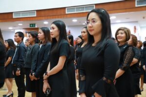 ข้าพระพุทธเจ้าทั้งหลายขอแสดงความสำนึกในพระมหากรุณาธิคุณอันหาที่สุดมิได้ จะขอประพฤติปฏิบัติตนเป็นพลเมืองดี มุ่งมั่นสืบสานพระราชปณิธาน เพื่อความเจริญมั่นคงของชาติและความผาสุกของประชาชนสืบไป“