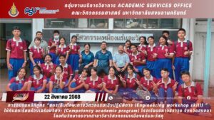 วันที่ 22 สิงหาคม 2568 กลุ่มงานบริการวิชาการ คณะวิศวกรรมศาสตร์ จัดอบรมหลักสูตร”ยกระดับทักษะทางวิศวกรรมเชิงปฏิบัติการ(Engineering workshop skill)” ให้กับน้อง ๆ ห้องเรียนเตรียมวิศวะ (Competency Academic Program : CAP) ชั้นมัธยมศึกษาปีที่ 4 โรงเรียนมหาวชิราวุธ จังหวัดสงขลา จำนวน 27 คน เพื่อให้น้องๆ ได้รู้จักสาขาวิชาวิศวกรรมเหมืองแร่และวัดสุมากขึ้น ผ่านกิจกรรมฝึกปฏิบัติด้วยตัวเอง โดยได้รับเกียรติจากคณาจารย์และบุคลากรสาขาวิชาวิศวกรรมเหมืองแร่และวัสดุ คณะวิศวกรรมศาสตร์ ม.อ. ร่วมเป็นวิทยากรให้ความรู้กับน้องๆ ในครั้งนี้