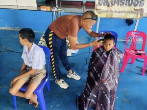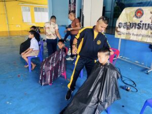 วันที่ 10 มิถุนายน 2568 เวลา 15.00 น. ภายใต้การอำนวยการของ นายเอก ยังอภัย ณ สงขลา นายอำเภอหาดใหญ่ นางสาวปิยพัชร์ วุ่นดำ ปลัดอำเภอ หัวหน้ากลุ่มงานบริหารงานปกครอง, นายธีรเดช จันมณี ปลัดอำเภอ หัวหน้าฝ่ายความมั่นคง, นายกิตติพงศ์ ชุมมิ่ง ปลัดอำเภอ (งานป้องกัน) และ นายณรงค์กร สุวรรณะ จ่ากองร้อยฯ สั่งการให้สมาชิกกองอาสารักษาดินแดนอำเภอหาดใหญ่ที่ 4 ลงพื้นที่ให้บริการนักเรียน ผ่านกิจกรรม “อส.บาร์เบอร์” ซึ่งเป็นบริการตัดผมเคลื่อนที่ฟรี โดยมีเป้าหมายเพื่อบรรเทาภาระค่าใช้จ่ายของผู้ปกครอง และสร้างความใกล้ชิดกับประชาชนในพื้นที่ ณ โรงเรียนบ้านคลองหวะ ตำบลคอหงส์ อำเภอหาดใหญ่ จังหวัดสงขลา