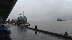 และที่บริเวณท่าเทียบเรือประมงสงขลา เรือประมงที่กลับเข้าฝั่ง หลังจากที่ศูนย์อุตุนิยมวิทยาภาคใต้ฝั่งตะวันออกประกาศเตือนคลื่นลมบริเวณอ่าวไทยมีกำลังแรง ทะเลมีคลื่นสูง 2 เมตร บริเวณที่มีฝนฟ้าคะนอง ทะเลมีคลื่นสูงมากกว่า 3 เมตร ยังคงจอดเรือที่ท่าจอดเรือ เพื่อรอเวลาให้คลื่นลมสงบ ในวันนี้เรือประมงส่วนใหญ่กลับเข้าฝั่งและขนถ่ายสินค้าสัตว์น้ำขึ้นท่าจะเป็นเรือประมงอวนล้อมปลาจาระเม็ดและปลาอินทรีย์ ซึ่งออกไปทำการประมงในอ่าวไทย ได้ทยอยกันนำเรือกลับเข้าฝั่งหลังมีการแจ้งเตือนจากศูนย์อุตุนิยมวิทยาภาคใต้ฝั่งตะวันออก ทำให้เรือประมงไม่กล้าเสี่ยง หวั่นถูกคลื่นซัดเรือจม เนื่องจากที่ผ่านมามีเรือประมงจมไปหลายลำ