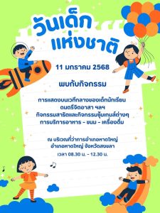 อำเภอหาดใหญ่ ขอเชิญร่วมกิจกรรมวันเด็กแห่งชาติ ประจำปี 2568 พบกับกิจกรรมและของรางวัลมากมาย อาทิ การแสดงบนเวทีกลางของเด็กนักเรียน ดนตรีจิตอาสา , กิจกรรมสาธิตและกิจกรรมซุ้มเกมส์ต่างๆ , การบริการอาหาร ขนม และเครื่องดื่ม ในวันเสาร์ที่ 11 มกราคม พ.ศ.2568 ตั้งแต่เวลา 08.30 น. เป็นต้นไป ณ บริเวณที่ว่าการอำเภอหาดใหญ่ อำเภอหาดใหญ่ จังหวัดสงขลา “ ทุกโอกาส คือ การเรียนรู้ พร้อมปรับตัวสู่อนาคตที่เลือกเอง”