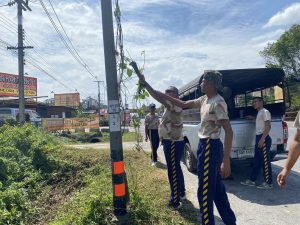 1. สมาชิกกองอาสารักษาดินแดนอำเภอหาดใหญ่ที่ 4 ดูแลความสะอาดเรียบร้อย เก็บขยะ เสาธง และเก็บกิ่งไม้ เพื่อให้มีความสะอาดและเป็นระเบียบเรียบร้อยตลอดเส้นทางเสด็จฯ