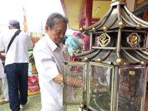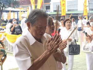 เมื่อผู้ว่าราชการจังหวัดสงขลามาถึงบริเวณพิธี ในโอกาสนี้ได้เข้าสักการะสิ่งศักดิ์สิทธิ์ภายในมูลนิธิมหากรุณาธรรมสถาน ซึ่งประดิษฐานสิ่งศักดิ์สิทธิ์อันทรงคุณค่าทางจิตใจของพุทธศาสนิกชนและผู้มีจิตศรัทธา อาทิ พระไตรรัตนพุทธเจ้า ได้แก่ พระอมิตาภะพุทธเจ้า พระศากยมุนีพุทธเจ้า และพระไภษัชยคุรุพุทธเจ้า ตามคติในพระพุทธศาสนานิกายมหายาน พระโพธิสัตว์กวนอิม (ปางมหากรุณาธารณี) พระศรีอริยเมตไตรยโพธิสัตว์ พระอวโลกิเตศวรโพธิสัตว์ รวมถึงเทพตามคติพราหมณ์ ก่อนจะเป็นประธานเปิดงานเทศกาลกินเจอย่างเป็นทางการ
