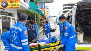 วันนี้ 11 กันยายน 2567 เวลา 11.46 น. โดยประมาณ ศูนย์วิทยุกู้ภัยจังหวัดสงขลา (ศูนย์มิตรภาพ) ได้รับแจ้งว่ามีบุคคลตกจากชั้น3 โรงแรมแหลมทอง ถนนประชาธิปัตย์ จึงได้แจ้งกำลังเจ้าหน้าที่พร้อมรถกู้ชีพออกตรวจสอบ เมื่อถึงที่เกิดเหตุพบผู้ได้รับบาดเจ็บเป็นชาย 1 ราย นอนอยู่บริเวณริมถนนติดกับฟุตบาท โดยมีอาการข้อมือซ้ายผิดรูป และมีบาดแผลฉีกขาดบริเวณข้อมือ และคิ้วซ้าย เจ้าหน้าที่จึงได้ทำการปฐมพยาบาลก่อนเคลื่อนย้ายนำส่งโรงพยาบาลหาดใหญ่ เพื่อทำการรักษาต่อไป จากการสอบถามเบื้องต้นได้รับแจ้งว่ากำลังทำงานอยู่ด้านนอกอาคารช่วงบริเวณชั้น 3 ของโรงแรม ดังกล่าว และได้เกิดเสียหลักพลัดตกลงมาจนได้รับบาดเจ็บ