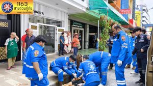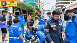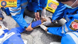 วันนี้ 11 กันยายน 2567 เวลา 11.46 น. โดยประมาณ ศูนย์วิทยุกู้ภัยจังหวัดสงขลา (ศูนย์มิตรภาพ) ได้รับแจ้งว่ามีบุคคลตกจากชั้น3 โรงแรมแหลมทอง ถนนประชาธิปัตย์ จึงได้แจ้งกำลังเจ้าหน้าที่พร้อมรถกู้ชีพออกตรวจสอบ เมื่อถึงที่เกิดเหตุพบผู้ได้รับบาดเจ็บเป็นชาย 1 ราย นอนอยู่บริเวณริมถนนติดกับฟุตบาท โดยมีอาการข้อมือซ้ายผิดรูป และมีบาดแผลฉีกขาดบริเวณข้อมือ และคิ้วซ้าย เจ้าหน้าที่จึงได้ทำการปฐมพยาบาลก่อนเคลื่อนย้ายนำส่งโรงพยาบาลหาดใหญ่ เพื่อทำการรักษาต่อไป จากการสอบถามเบื้องต้นได้รับแจ้งว่ากำลังทำงานอยู่ด้านนอกอาคารช่วงบริเวณชั้น 3 ของโรงแรม ดังกล่าว และได้เกิดเสียหลักพลัดตกลงมาจนได้รับบาดเจ็บ