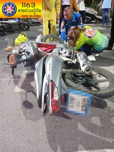 วันนี้ 2 กันยายน 2567 เวลา 01.09 น. โดยประมาณ ศูนย์วิทยุกู้ภัยจังหวัดสงขลา (ศูนย์มิตรภาพ) ได้รับแจ้งว่ามีอุบัติเหตุรถจักรยานยนต์ชนกับรถจักรยานยนต์ เหตุเกิดบริเวณถนนนิพัทธ์อุทิศ3 ตัดกับถนนศรีภูวนารถ จึงได้แจ้งกำลังเจ้าหน้าที่พร้อมรถกู้ชีพออกตรวจสอบ เมื่อถึงที่เกิดเหตุพบรถจักรยานยนต์ Honda Wave125 I สีเทา หมายเลขทะเบียน 1กษ 2565 สงขลา ชนกับรถจักรยานยนต์ Honda Scoopy I สีขาว หมายเลขทะเบียน 1กข 7411 สงขลา ตรวจสอบเบื้องต้นแล้วมีผู้ได้รับบาดเจ็บ 1 ราย และเสียชีวิตในที่เกิดเหตุ 1 ราย (ขอสงวนนาม) เจ้าหน้าที่จึงได้ทำการปฐมพยาบาลก่อนเคลื่อนย้ายนำส่งโรงพยาบาลศิครินทร์เพื่อทำการรักษาต่อไป ในส่วนของผู้เสียชีวิตได้เคลื่อนย้ายนำส่งโรงพยาบาลหาดใหญ่