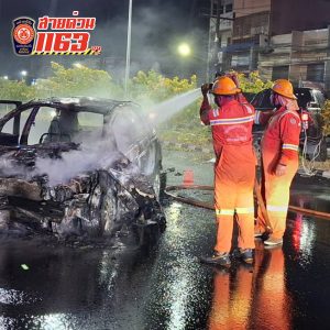 เมื่อเวลา 00.37 น. (30 มี.ค. 67) จนท.กู้ภัยมูลนิธิมิตรภาพสามัคคี (ท่งเซียเซี่ยงตึ๊ง) หาดใหญ่ พร้อมรถพยาบาล รถอุปกรณ์กู้ภัย และจนท.ดับเพลิงของเทศบาลเมืองคอหงส์ ได้รับแจ้งและออกตรวจสอบอุบัติเหตุรถชนกันระหว่างรถยนต์เก๋งกับรถยนต์กระบะ4ประตู บริเวณหน้าสวนสาธารณะหาดใหญ่ ถ.กาญจนวนิช อ.หาดใหญ่ จ.สงขลา และเกิดไฟลุกไหม้รถยนต์เก๋งจนเสียหายทั้งคัน หลังจากจนท.ได้เข้าฉีดน้ำรถยนต์เก๋งที่ถูกไฟไหม้จนดับเป็นที่เรียบร้อยแล้ว จนท.กู้ภัยได้เข้าตรวจสอบผู้บาดเจ็บที่นั่งอยู่ใกล้จุดเกิดเหตุ เป็นชายอายุ 36 ปี ตรวจสอบตามร่างกายมีบาดแผลฟกช้ำและแผลฉีกขาดตรงแขนและขา จึงได้ช่วยเหลือปฐมพยาบาลและนำตัวส่งห้องฉุกเฉินรพ.กรุงเทพหาดใหญ่ตามความประสงค์ ส่วนสาเหตุของอุบัติเหตุที่เกิดขึ้น ทางร้อยเวรสภ.คอหงส์อยู่ระหว่างการสอบสวนผู้ขับขี่ทั้งสองฝ่าย