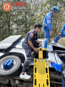 วันพฤหัสบดีที่ 19 กุมภาพันธ์ พ.ศ.2569 เวลา 12.01 น. ศูนย์วิทยุกู้ภัยจังหวัดสงขลา (ศูนย์มิตรภาพ) ได้รับแจ้งมีเหตุรถยนต์กระบะพลิกคว่ำ เหตุเกิดที่ทุ่งควนจีน ตำบลควนลัง อำเภอหาดใหญ่ จังหวัดสงขลา จึงแจ้งเจ้าหน้าที่กู้ชีพ-กู้ภัย แผนกบรรเทาสาธารณภัย-กู้ภัย มูลนิธิมิตรภาพสามัคคี (ท่งเซียเซี่ยงตึ๊ง) หาดใหญ่ เข้าปฏิบัติงานร่วมกับรถแอดวานซ์โรงพยาบาลคลองหอยโข่ง ที่เกิดเหตุเป็นรถกระบะตู้ทึบ ยี่ห้อโตโยต้า รีโว่ สีบรอนซ์เงิน ทะเบียน ผท 7600 สงขลา พลิกคว่ำลงข้างทาง มีผู้ได้รับบาดเจ็บเป็นชาย 1 ราย เจ็บบริเวณสันหลังและชายโครง ชุดกู้ชีพ-กู้ภัย สามารถนำผู้บาดเจ็บออกมาจากตัวรถและได้ทำการปฐมพยาบาลเบื้องต้นเป็นที่เรียบร้อย ก่อนนำส่งโรงพยาบาลหาดใหญ่เพื่อทำการรักษาตัวต่อไป