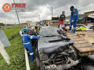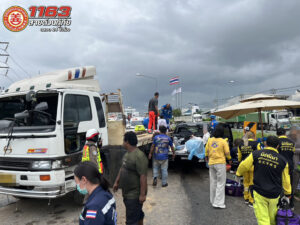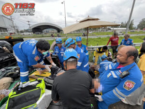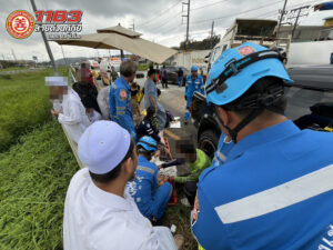 วันพฤหัสบดีที่ 8 มกราคม พ.ศ.2568 เวลา 12.56 น. มูลนิธิมิตรภาพสามัคคี (ท่งเซียเซี่ยงตึ๊ง) หาดใหญ่ ได้รับแจ้งมีอุบัติเหตุรถชนกันระหว่างรถ10 ล้อ กับรถยนต์กระบะ เหตุเกิดตรงข้ามโรงงานโชติวัฒน์ ถ.สายเอเซีย ฝั่งขาเข้าหาดใหญ่ มีผู้ได้รับบาดเจ็บติดภายใน และบาดเจ็บหลายราย แผนกบรรเทาสาธารณภัย-กู้ภัย จัดส่งเจ้าหน้าที่ของทางแผนกบรรเทาฯ รถพยาบาล2 คัน พร้อมด้วยรถอุปกรณ์ตัดถ่าง เข้าให้ความช่วยเหลือ โดยมีกู้ชีพมัชฌิมา กู้ชีพบ้านพรุ เข้าปฏิบัติงานในครั้งนี้ด้วย ที่เกิดเหตุพบรถ 10 ล้อ ฮีโน่ สีขาว ทะเบียน 70-5154 สงขลา ชนกับรถยนต์กระบะยี่ห้ออีซูซุ สีดำ ทะเบียน กธ 1420 ปัตตานี มีผู้ได้รับบาดเจ็บหลายราย เจ้าหน้าที่แผนกบรรเทาฯ จึงเร่งรัดให้การช่วยเหลืออย่างเร่งด่วน ก่อนเคลื่อนย้ายผู้บาดเจ็บ จำนวน 3 ราย นำส่งโรงพยาบาลสงขลานครินทร์ เพื่อดำเนินการรักษา ในส่วนของผู้บาดเจ็บที่เหลือ กู้ชีพมัชฌิมา กู้ชีพบ้านพรุ รับดำเนินการ