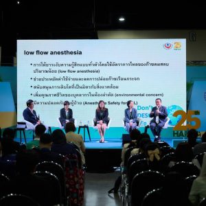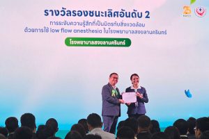 Low flow anesthesia เป็นการให้บริการระงับความรู้สึกแบบทั่วตัวโดยใช้อัตราการไหลของก๊าซดมสลบปริมาณน้อย เป็นการพัฒนาคุณภาพที่สะท้อนการพัฒนางานบริการอย่างยั่งยืน สนับสนุนการเติบโตที่เป็นมิตรกับสิ่งแวดล้อมและเพิ่มคุณภาพชีวิตของบุคลากรในห้องผ่าตัด (environmental concern) รวมถึงช่วยลดภาระค่าใช้จ่าย ลดการปล่อยก๊าซคาร์บอนไดออกไซด์สู่ชั้นบรรยากาศ สอดคล้องกับแผนกลยุทธ์ของโรงพยาบาล