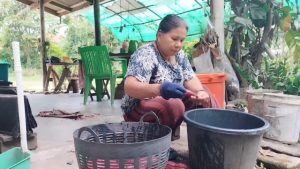 นายสมพล และนางสุภาพร แช่ติ้ว สองสามีภรรยา เกษตรกรอำเภอเมืองสงขลา บ้านยางงาม ม.9 ต.ทุ่งหวัง อ.เมือง จ.สงขลา ปลูกมันหวานญี่ปุ่น 1 งาน หรือ 100 ตารางวา เก็บผลผลิตขายสร้างรายได้เลี้ยงครอบครัว